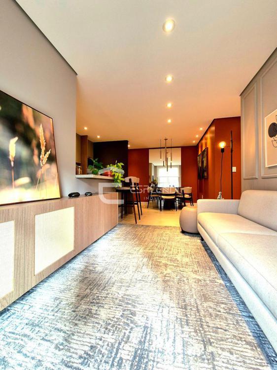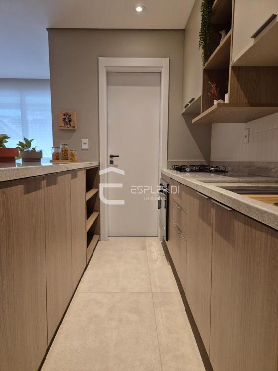 A cozinha integra à sala que possibilita dois ambientes bem definidos. Possui ainda, sacada com churrasqueira, ideal para momentos de lazer.